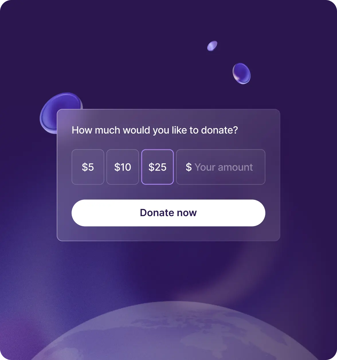 Go live and connect with millions of causes from every country worldwide, with just a few lines of code. Then keep on top of your impact and ROI via our dashboard.
